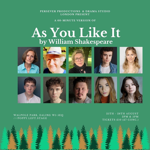 For the third year running Persever Productions and Drama Studio London present their 60min Shakespeare in Walpole Park,  from 25th-28 th August.