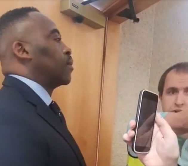 In the video footage posted online, the group chant 'Josh, George, Harry' after police officers arrive, before eventually leaving Mr Inyama's office.