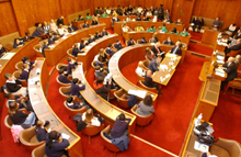 Pupils in the council chamber for the Children’s Parliament at Hammersmith Town Hall