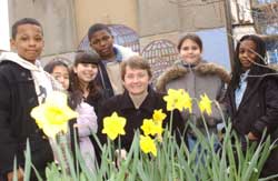 Julia Thrift director of CABE Space, Vi Nguyen, Lucy Lee, both 9, Hammersmith & Fulham Council mayor Cllr Charlie Treloggan, Minister Yvette Cooper, leader of H & F Council Cllr Andrew Slaughter, Joel Jaldoo, 10, Reece Hercules, 9, Olivia Mangumbu, 9, and Leila Tallie, 10 |