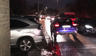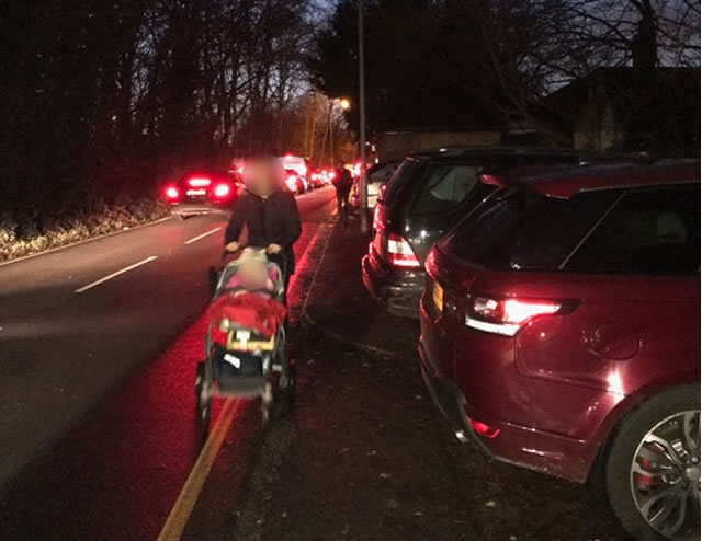 Poor parking means both pedestrians are forced on to the road - image: