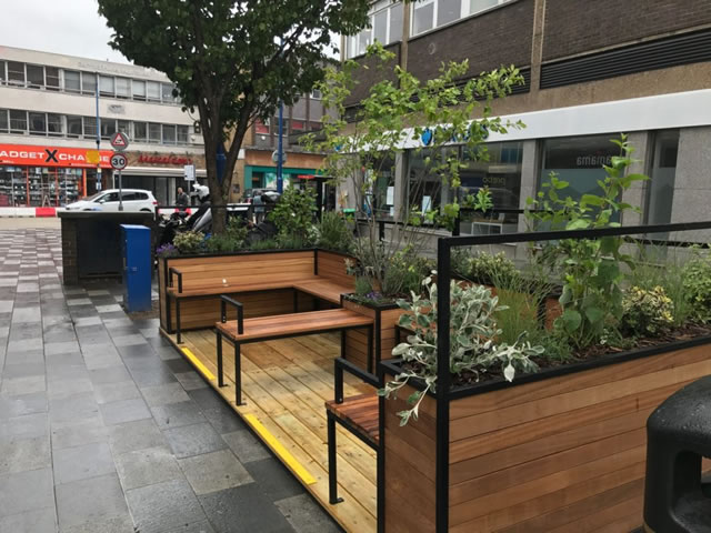 Positively Putney the Town Centre BID pledged £20,000 towards the council's policy to 'revamp Putney High Street', both to improve air quality and the aesthetics of Putney town centre. The results are the two parklets that have appeared on Montserrat Road and Felsham Road.