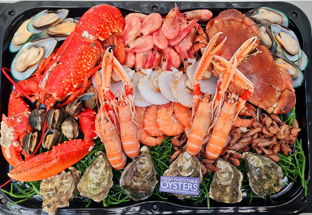 For that special occasion we can make up a Plateau de fruits de mer or Seafood platters and we can also cook and dress whole salmon. For prices and details of the salmon and seafood platters, please give us a call or have a look in the weekly newsletter.
