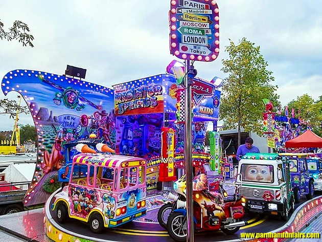 With kiddies rides, a big wheel, carousel, helter skelter, dodgems and inflatables.