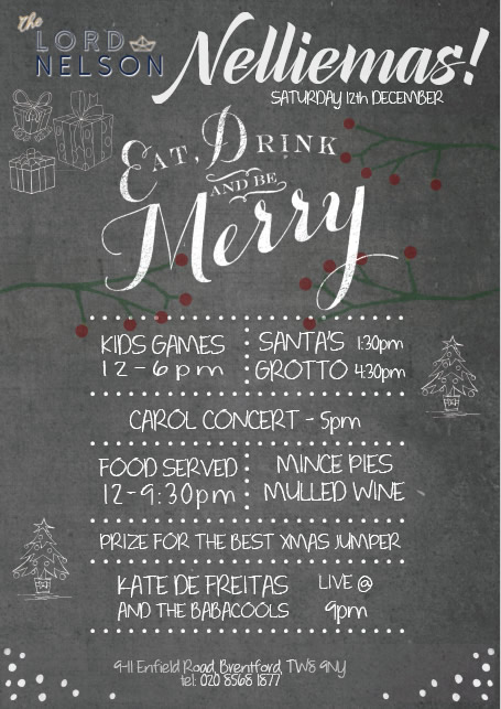 Come down to the Lord Nelson on Saturday the 12th of December for Nelliemas where you can eat, drink and be merry.