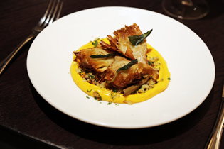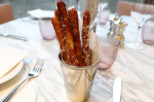 The menu includes many of the dishes that have proved popular at Sam's Riverside including the delectable Parmesan churros and some new seasonal options from Head Chef Jacob Keen Downs. We tried the crispy duck salad with watercress and persimmon as well as the fried artichoke with saffron and roasted garlic aioli. Both dishes were imaginative, beautifully presented, delicious, and had a good balance of textures. Then we had the chargrilled tronçon of halibut with crayfish beurre noisette, a side of chips, the sherry braised pork cheeks, the three cornered leek mash, and some kalettes and brassicas in lemon oil as a side. Both the halibut and crayfish came in very generous portion sizes whilst the pork cheek had a wonderfully deep flavour and was so tender. Only one of us could manage a dessert of a Basque style cheesecake with sloe berries and wild quince. We drank a glass of Sicilian white wine and then had a bottle of Argentinian Malbec recommended by the sommelier.