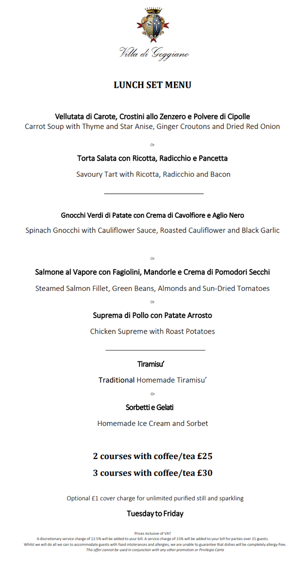 Villa di Geggiano's special lunch menu (Ad)