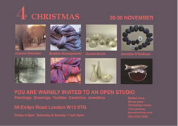 Artists At Home Open Studio for Christmas 2014 takes place from November 28-30 at 59, Emlyn Road, W12 9TG.