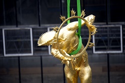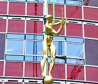 The spectacular three metre high gilded bronze statue was first erected in the centre's Rotunda in 1960 for the opening of the former BBC Centre, representing the radiation of television light around the world.