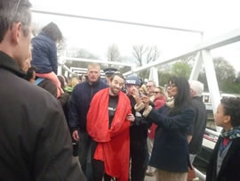 She said she was watching the race from Chiswick Pier and recognised Mr. Oldfield as he was being taken out of the river. He was smiling while the crowds booed him.