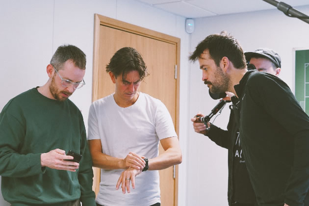 Thomas Frank checks his heart rate monitor during filming. Picture: Brentford FC