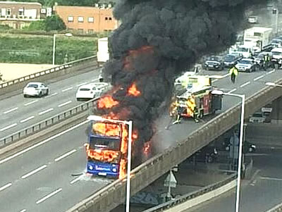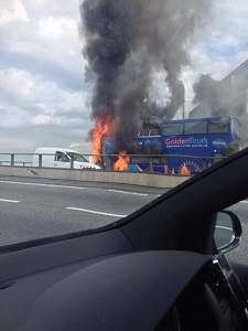 London Fire Brigade is investigating the cause of the blaze which broke out on a double decker tour bus on the busy westbound Westway, the A40 during the evening rush hour on Friday June 20.