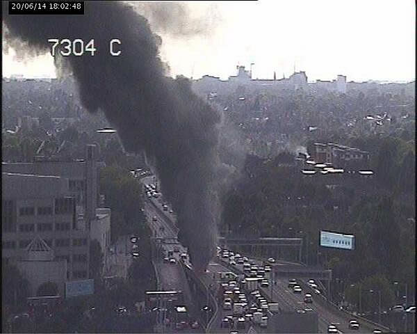As these pictures show, the dramatic plume of smoke rising from the elevated road could be seen for miles around.