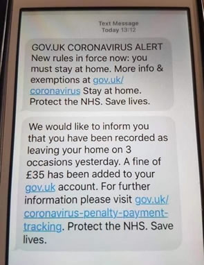 The newest text scam tells people they have been fined for flouting the Government’s ‘lockdown’ rules.