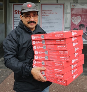 Mohammad Shabbire and his colleagues from Pizza Hut recently delivered a free batch of pizzas to hard pressed staff at Ealing and Northwick Park hospitals.