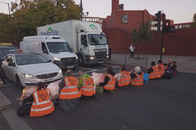 The protestors blocking traffic by Gliddon Road. Picture: Just Stop Oil