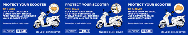 Last week the Met launched it's new Be Safe campaign, with the headline LOCK, CHAIN AND COVER your scooter to make it less visible to thieves.