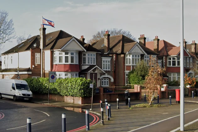 The adjacent property now for sale for £1.695 million, last 2014 for £1,275,000 and is being marketed by Grimshaws. The listing highlights the home’s elegant layout, spacious rooms, and potential for expansion, as well as the good schools in the area, but does not mention its diplomatic neighbour. The house was previously used as an Airbnb and is being sold freehold with no onward chain.
