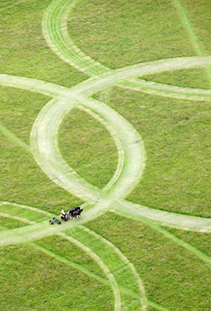 The Rings which are approximately 300 meters wide and over 135 meters tall are set to be another exciting feature in London for the duration of the Olympic Games. They have been mown into the grass by six of The Royal Park’s shire horses and can be seen from the air as Richmond Park lies under the flight path of Heathrow airport.