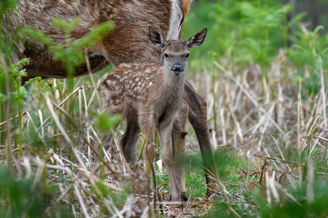 Baby deer are born scentless and immobile; therefore, hiding a fawn or calf in long grass or bracken for the first few weeks of their life is the best way a mother can protect them from predators whilst they forage for food. Every year, several baby deer are killed by dog attacks, so mothers will act defensively if they spot dogs close by. Human contact can be just as devastating - touching, or even just approaching a baby deer may result in it being abandoned by its mother and failing to survive.