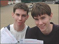 Among the star achievers were twins Jonathan and Andrew Hackett, of Northfields, who achieved straight As. The 16-year-old students at Elthorne Park High School in Hanwell, West London, said they had been surprised by their success. Jonathan achieved 11A*s, while Andrew achieved 9A*s and 2As. "I was expecting good results, but not this good. I studied hard," Jonathan said. The twins now plan to study A-Levels or the International Baccalaureate at Richmond College. Both said they did not yet have their sights set on specific careers.