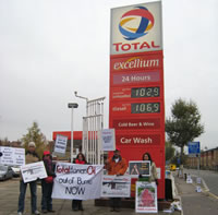Saturday 24th November saw Burma solidarity campaigners demonstrating at at Raven Total station, Goldhawk Road and West Four Total station, Chiswick High Road, as part of a national day of action calling on Total Oil to pull out of Burma and stop financing the Burmese military regime.