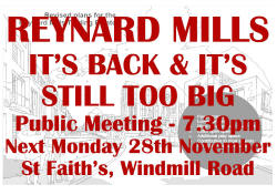 With a Public Consultation period of 21 days, time is of the essence to submit fresh objections to this planning application. As this is a new application, previous objections will not count. To find out more, please come to the Public Meeting at St Faith’s Church on Monday, 28 November at 7.30pm and email windmillroadaction@gmail.com.