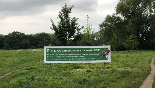 Walkers on Putney & Wimbledon Common will notice new banners drawing attention to the Conservators campaign to raise awareness of responsible dog ownership. This is part of an on-going support for the enforcement of the Commons’ Byelaws.