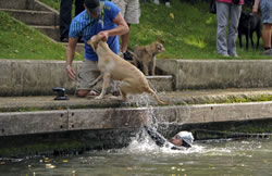Over the weekend David, having completed nearly 100 miles of arduous swimming, even stopped swimming for a short while to turn around and help and help a struggling dog, who had jumped into the water, to safety.