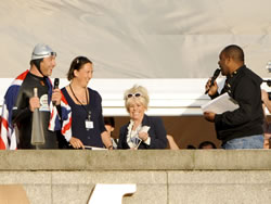 As well as his wife, Lara Stone, and his mother, David was greeted by a whole host of celebrities including Lenny Henry, Miranda Hart, Barbara Windsor, Tanni Grey-Thomson, Mark Foster and Sir Steve Redgrave.