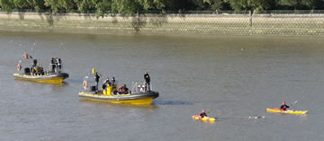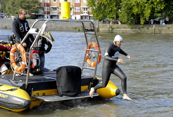 Warning. The public should not try this themselves. The Thames is incredibly dangerous and many people have drowned in its waters which have powerful tides and unpredictable currents.