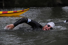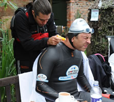 Despite the excitement, just a short while into the swim David’s trainer, Greg Whyte, spotted a blue tinge on David’s back – the first signs on hypothermia. Although David preferred to swim in trunks, Greg insisted David changed into his wetsuit at the first stop as a matter of urgency. Fortunately he fought off hypothermia but the torrential weather conditions meant David fell drastically behind schedule.