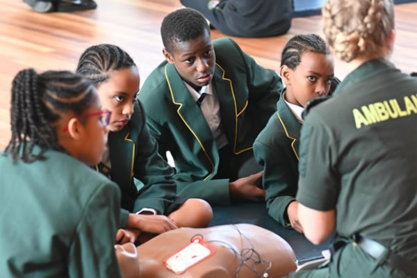 Children learning about CPR from LAS paramedics