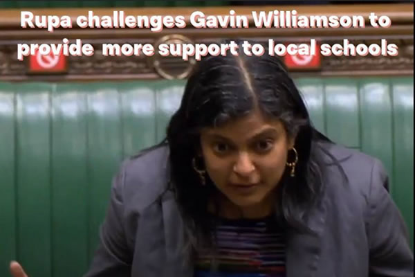 Ealing Central and Acton MP Rupa Huq has pressed Education Secretary Gavin Williamson MP to “compensate” local schools that have struggled with Covid-19.