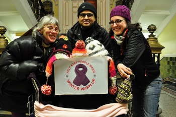 Alison Wood, project coordinator, Ealing Churches Winter Night Shelter; cabinet member for housing, employment and skills, councillor Hitesh Tailor and Elizabeth Ursell manager of St Mungo’s outreach team in Ealing launching campaign at Ealing Town Hall