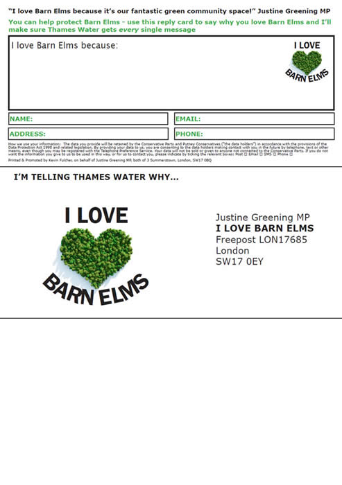 I Love Barn Elms - Print, Complete & Send to Putney's MP