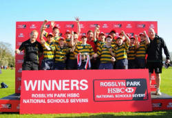 St Benedict’s Ealing took the first tournament of the prestigious U13 Rosslyn Park HSBC National Schools Sevens with a storming 24-0 win over Ysgol Gyfun Glantaf School in Cardiff on Tuesday 27th March.