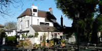 The Black Lion is a 250 year old pub on the river in Hammersmith/Chiswick border with a very large flagstone patio.