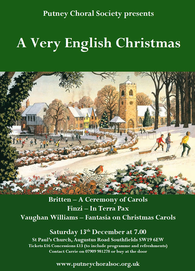 Putney Choral Society, present a "A Very English Christmas" - a full and delightful selection of music to celebrate Christmas: