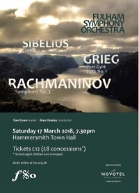 Fulham Symphony Orchestra return to Hammersmith Town Hall on Saturday 17 March to perform Edvard Grieg's Peer Gynt Suite No. 1; Jean Sibelius' Tapiola