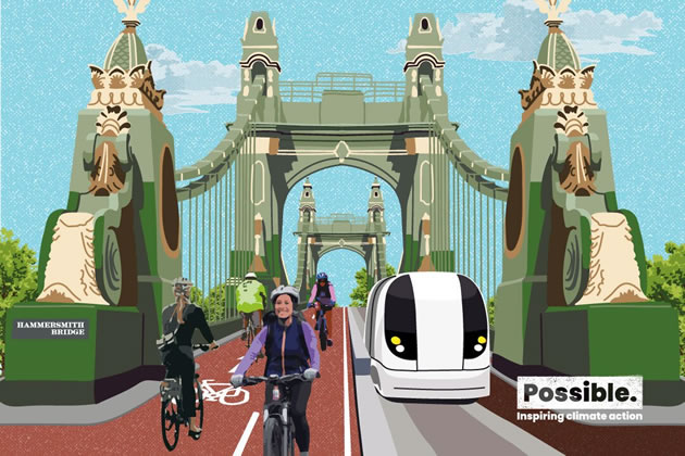 Leo Murray of Possible says ,“All the rhetoric from the government and Hammersmith and Fulham Council is about re-opening the bridge to traffic, but what if there was another way?