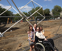 The 41-foot sculpture, part of Hammersmith and Fulham's contribution to the Cultural Olympiad, is a set of goal-posts sitting on rotating car turntables on Shepherd’s Bush Green - the historic scene of the British football team’s Olympic triumph in 1908.