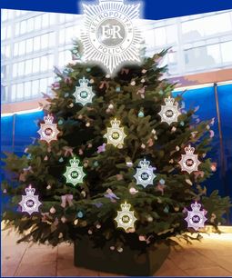 Members of the public are being urged to give a gift by collecting a tagged ribbon from a Christmas tree outside New Scotland Yard or by visiting the virtual MPS Christmas tree on the Met website.