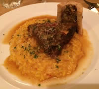 For mains, he opted for the onglet steak with béarnaise and frites. The steak was cooked to perfection, properly sealed and pink and juicy on the inside. I went for the braised veal cheek, risotto alla Milanese, roast bone marrow & gremolata. This was a wonderful combination of textures, the melt-in-the-mouth veal (you could cut it with a spoon) offset by the al dente of the rice, all wonderfully seasoned.