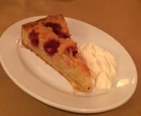 To finish I had poached meringue, rhubarb & custard. Poaching the meringue gives it a soft texture, rather like a marshmallow and it fitted superbly with the tartness of the rhubarb and the vanilla-infused custard. My husband had raspberry and almond tart. Here the sharpness of the raspberries cut through the richness of the almond filling and complemented by a dollop of crème fraiche.