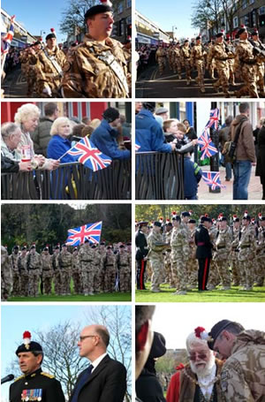 After the battalion had arrived at Lampton Park, Cllr Peter Thompson and Brigadier Minter, colonel of the Royal Regiment of Fusiliers, took a salute and welcomed the troops back followed by a ceremony where medals were awarded to the soldiers.