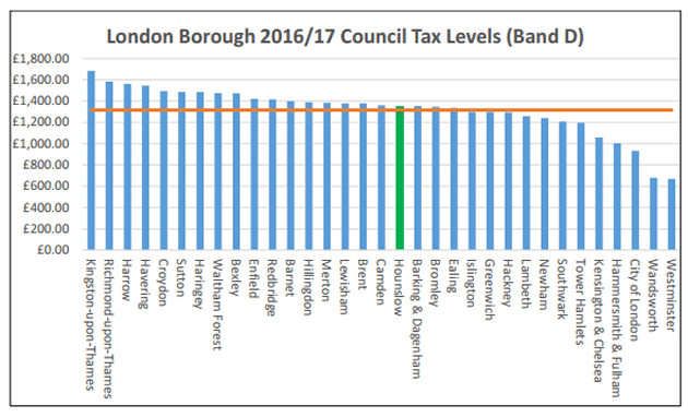 Band D property households currently pay £1079.77 annually. Combined with the 1.99 per cent Council Tax increase, this will mean a total Council Tax rise of 3.99 per cent in 2017/18. This means an additional annual cost of £43.08 for a household living in a Band D property excluding the extra payable through the GLA precept which is levied by the Mayor of London.