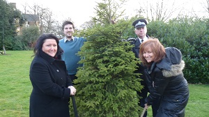 Pictured: planting the tree of remembrance, from L-R: Cllr Sampson, Cllr Mayne, Chief Inspector Rob Weir and Brenda Spink of Refuge