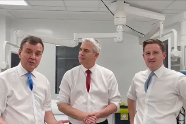 Andrew Dinsmore (right) at Charing Cross Hospital this week with Greg Hands MP and Health Secretary, Steve Barclay MP