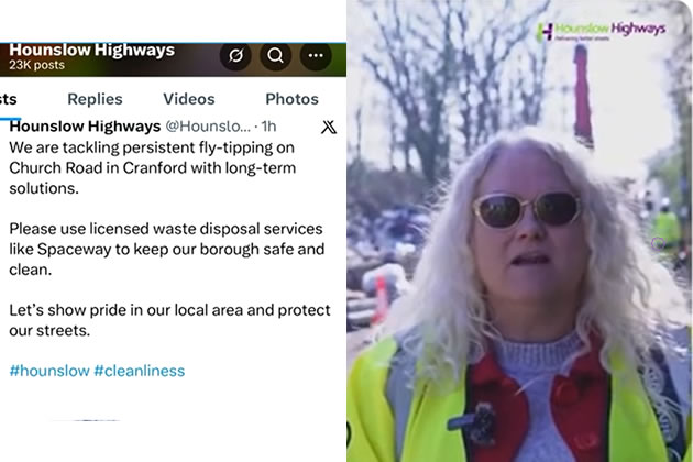 The now deleted video, which was shared on X, begins with Cllr Sharma introducing herself as a councillor and candidate for Cranford ward. It went on to display the work that the Labour-led council is doing on tackling fly-tipping in the borough. The councillor gives advice on waste disposal and highlights that booking is no longer required to bring rubbish to the Space Waye tip from Monday to Thursday.
